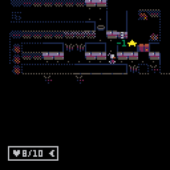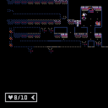 This game was made in the context of a semester-long game jam, although it was mostly made in the last two weeks of the game. The game was developed using the Pico-8 virtual console. To navigate the dungeon, you use the arrow keys. You can pick up items by going over them or opening chests. To open the use menu, press C on your keyboard to open the context menu for all your spells and equipment.
